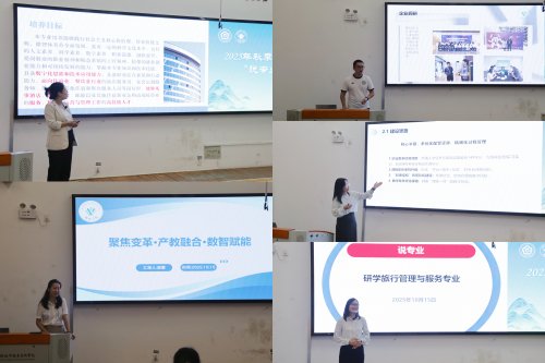 会上,各专业负责人围绕专业建设目标、课程体系优化、师资队伍建设、实践教学改革等核心内容依次作汇报,清晰梳理专业发展规划与现存重点任务;随后,教师代表结合暑期在旅游景区运营、酒店服务管理、文旅项目策划等企业实践经历,分享一线工作经验与调研成果,生动呈现实践中的典型案例与问题思考。