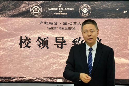 11月6日上午,我院与无锡丽笙精选酒店联合举办“丽笙班”教室启用仪式在旅游学院2号实训楼举行。此次仪式以“产教融合·匠心育人”为主题,校党委副书记、校长瞿立新,无锡锡州酒店管理集团总经理凌志刚、无锡锡州酒店管理集团丽笙精选酒店驻店经理王凯,各部门总监和实习生代表出席仪式。旅游学院党政领导、酒店各部门经理、教师代表及学生代表参加活动。瞿立新致欢迎词,“丽笙班”是丽笙数智产业学院的重要实践载体,是学校深化产教融合、推进校企协同育人的重要抓手。“丽笙班”教室是校企“合作办学、合作育人、合作就业、合作发展”的实体化平台。双方将以“丽笙班”建设为契机,在课程共建、赛事指导、师资互聘等方面持续发力,依托丽笙数智产业学院,从人才培养、资源共建、行业辐射三个维度推动校企合作向纵深发展,培养“文化引领、服务为本、数智赋能”