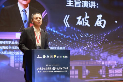主旨演讲环节干货满满。我校校长瞿立新以“破局・蝶变”为题,结合AIGC技术在文化遗产活化中的创新应用,深入剖析文旅景区多维度创新路径,强调职业教育需主动抢占“人工智能+文旅高职教育”发展先机,培育适应产业升级的复合型人才。北京第二外国语学院旅游科学学院院长助理张慧英则分享了北京文旅“五大体系”建设的实践经验,提出从“点线突破”到“面体生态”的转型发展思路,为共同体未来发展提供了重要指引。